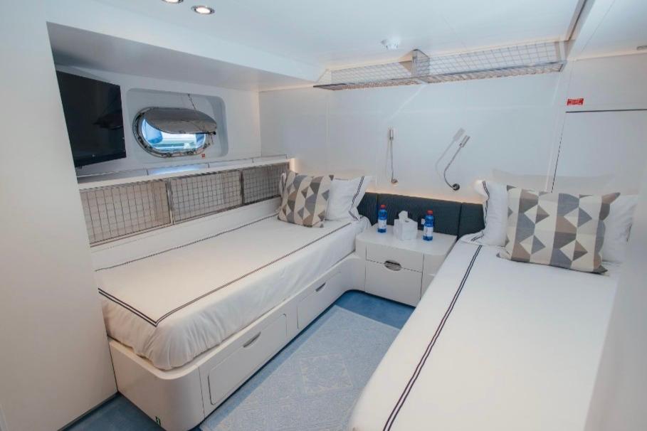 Designed for relaxation and socializing, the yacht offers expansive decks with seamlessly connected indoor and outdoor living areas. Onboard features include a fully equipped gym, Wi-Fi connectivity, and a climate-control system for year-round comfort. The vessel underwent a complete refit in 2024.