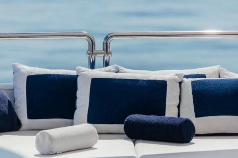 Her modern interiors, designed by Dada & Associate, harmoniously combine warm, welcoming woods with contemporary cabin décor. The exterior spaces are impressive, offering multiple lounging areas both forward and aft, plus a sun-filled upper deck with a stylish dining area for 10 guests, a bar, and a large sunlounge. The sundeck is equally well suited for idyllic spa treatments or sunset aperitifs.