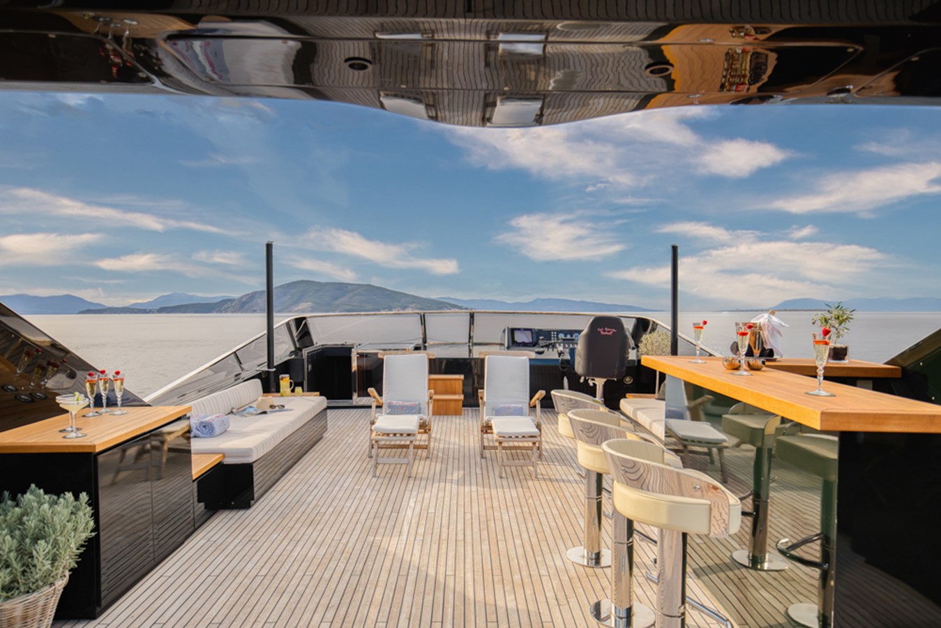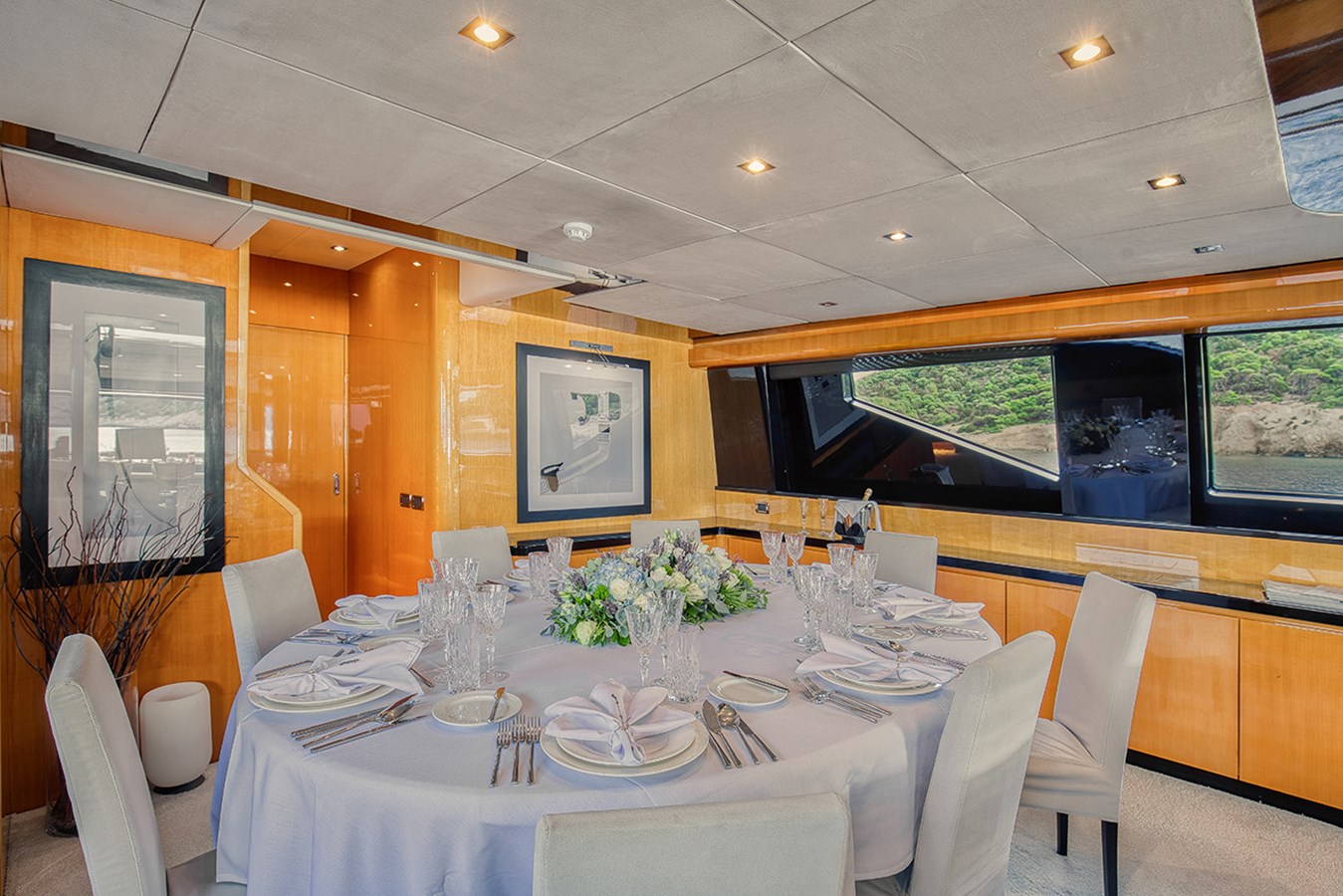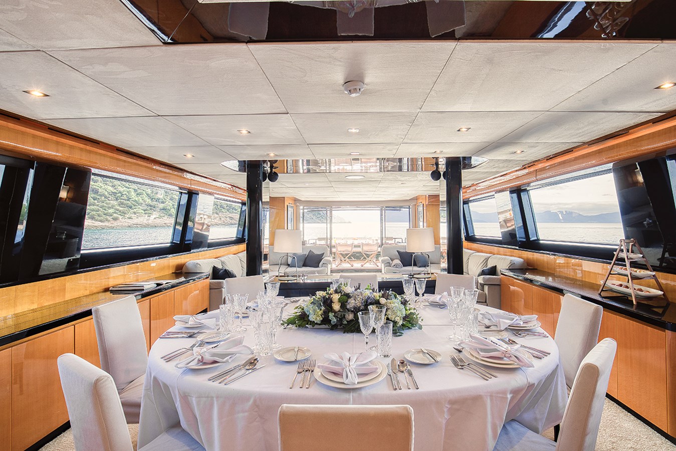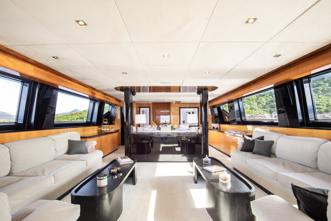 Combining strong performance with refined interiors and generous exterior spaces, she represents a highly attractive opportunity in her category. Her main salon is bright and contemporary, featuring expansive windows and a distinctive black partition that elegantly separates the lounge and dining areas.
