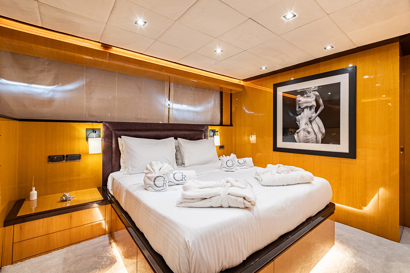 She accommodates up to 12 guests in six en-suite cabins — a rare and highly sought-after configuration for a yacht of this size. Following a full redesign by Diarchon Architects, the layout offers exceptional flexibility, making her equally suited for private use or charter.