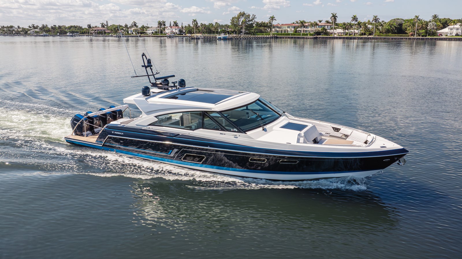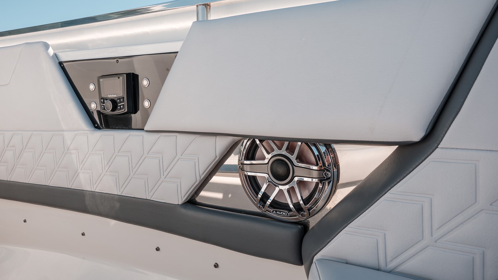 The proven, surefooted double-step FAS3Tech® hull will take your complement of guests to dinner across the bay or on far-flung offshore journeys in speed and comfort with the confidence and might of the revolutionary all-new quad Mercury V12, 600 horsepower Verado outboards. The horizons are limitless in your 500 Super Sport Crossover.