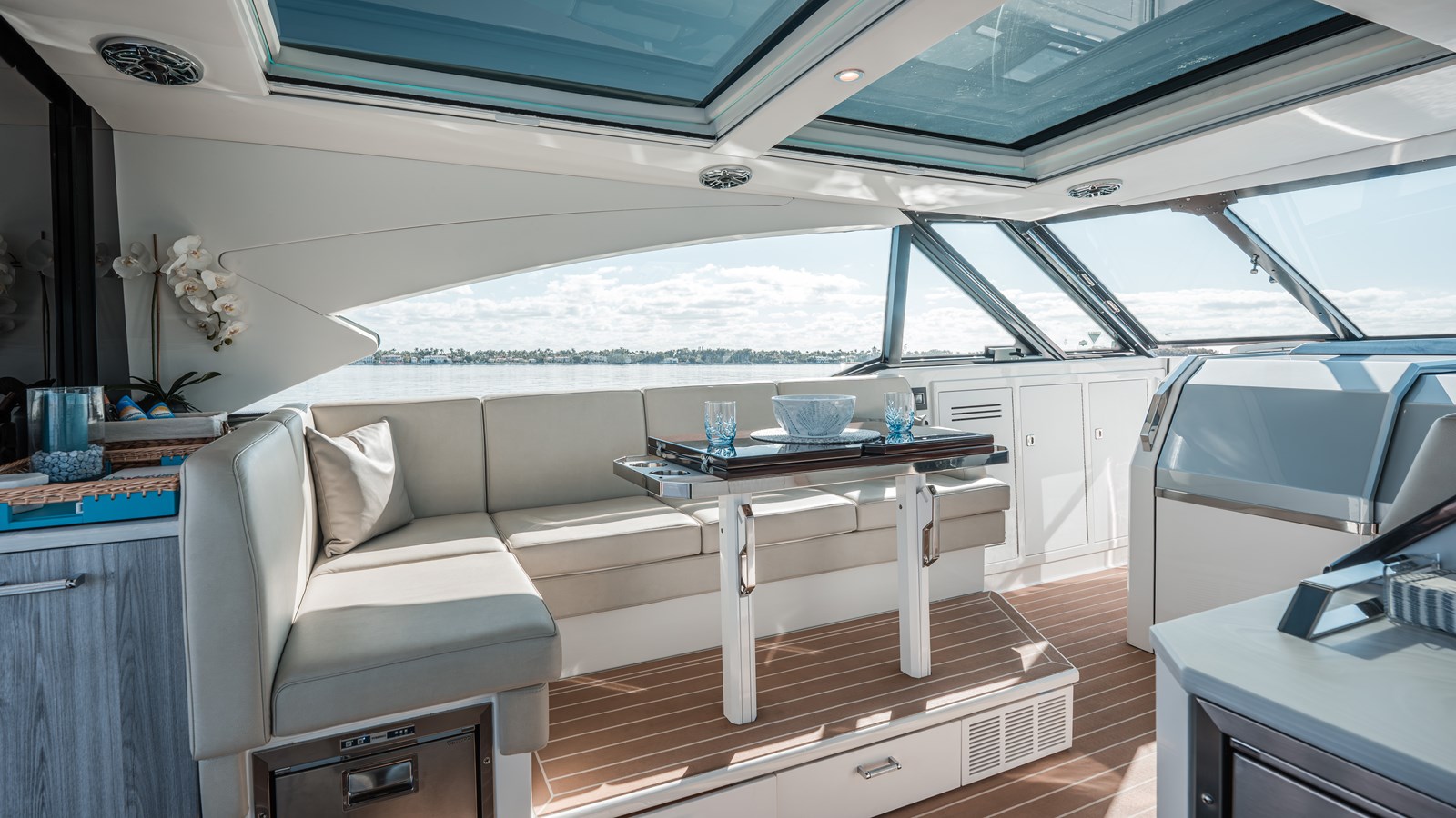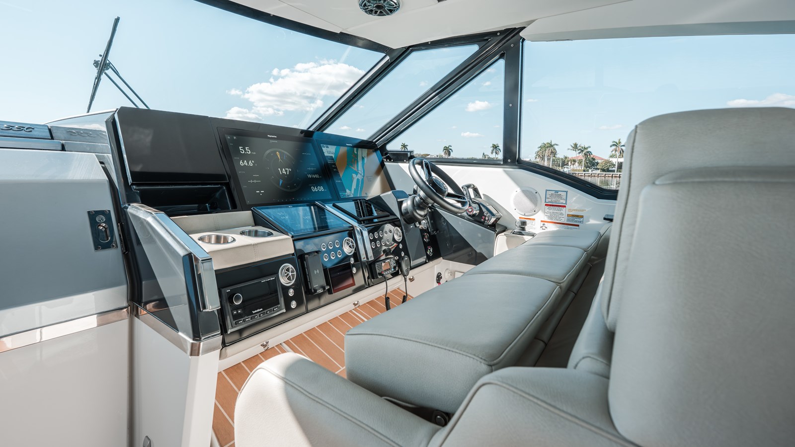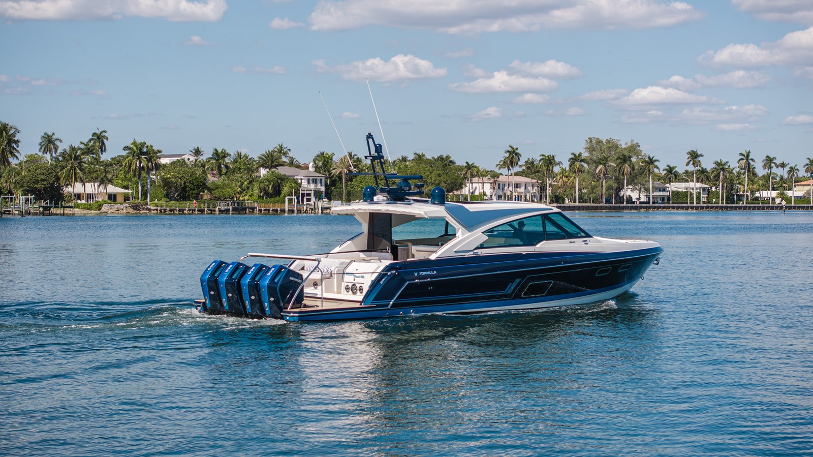 From the enclosed coupe-top salon to the aft lounge bar, the 500 SSC is a true evolution and culmination of the Formula SmartZone™ concept. From the full bow lounge forward to the expansive extended swim platform aft, you will find air-conditioned comfort, entertainment and innovation. A full-width motorized glass salon bulkhead allows you to choose your degree of separation or shared fun with the aft cockpit lounges and bar areas.