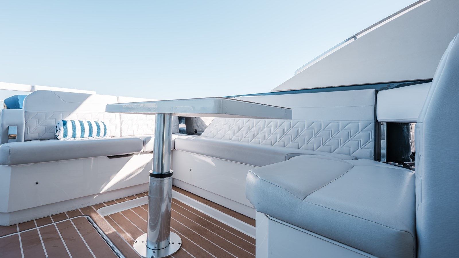Woodgrain Vinyl Decking Throughout Full Cockpit & Swim Platform