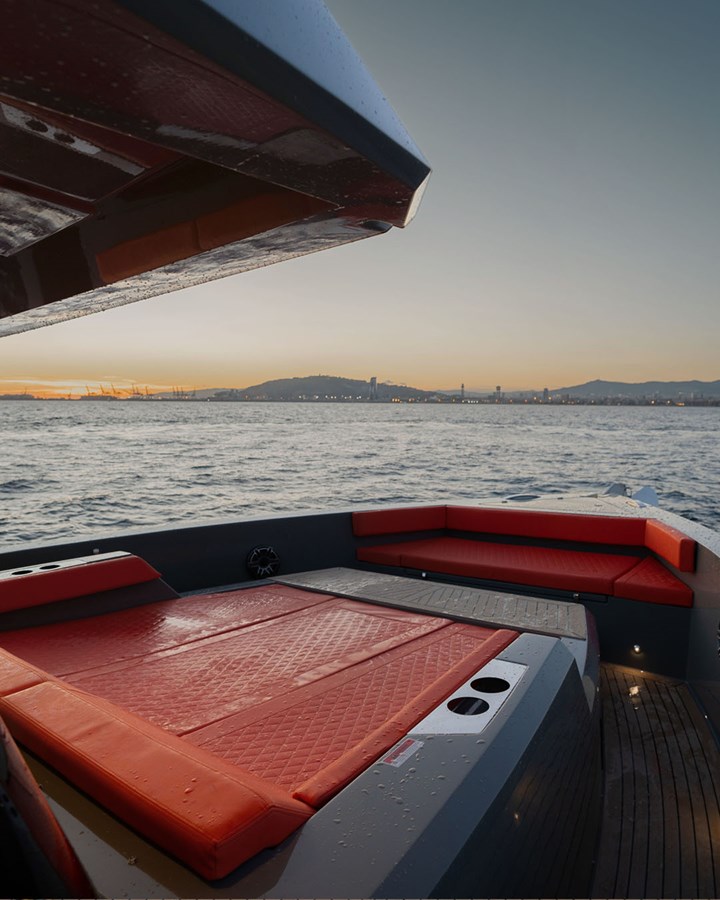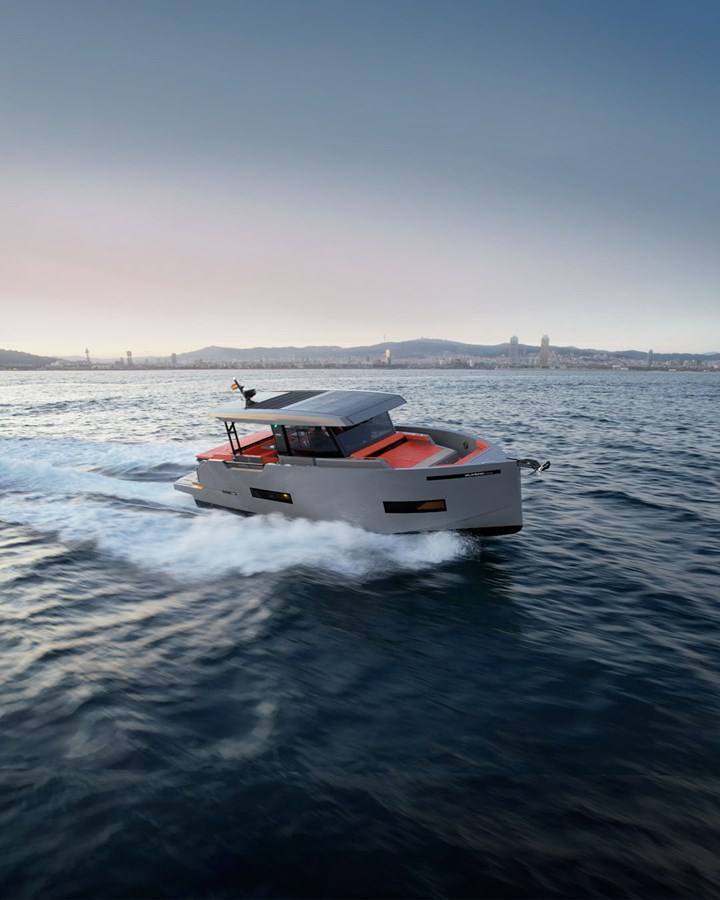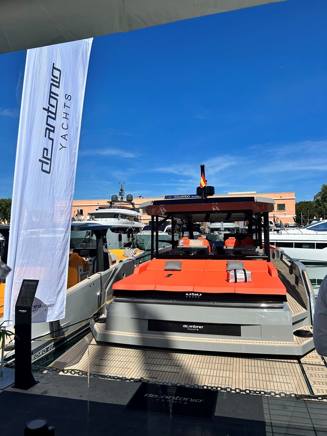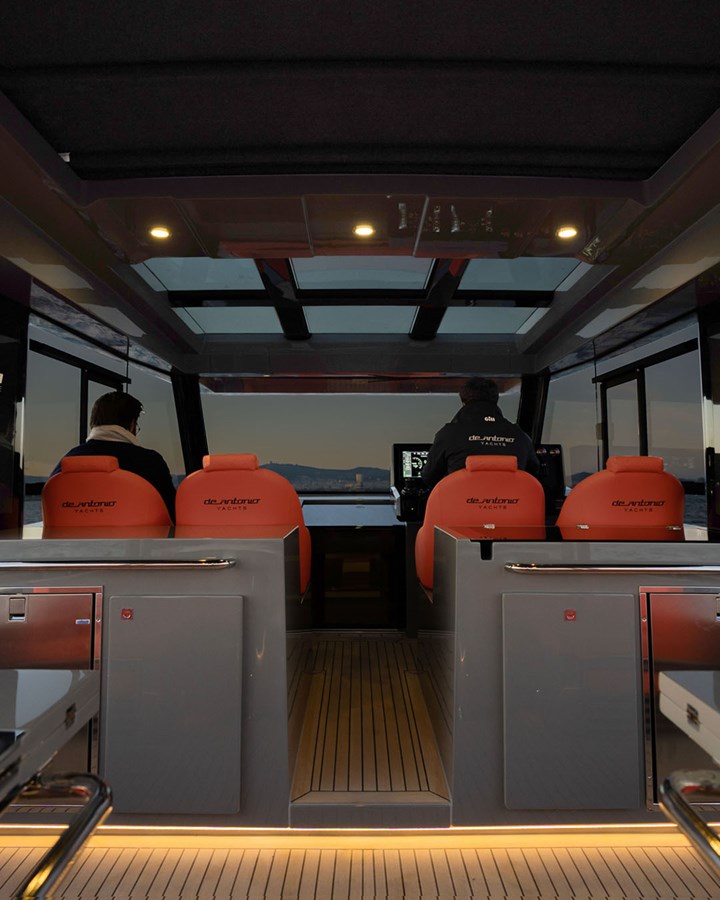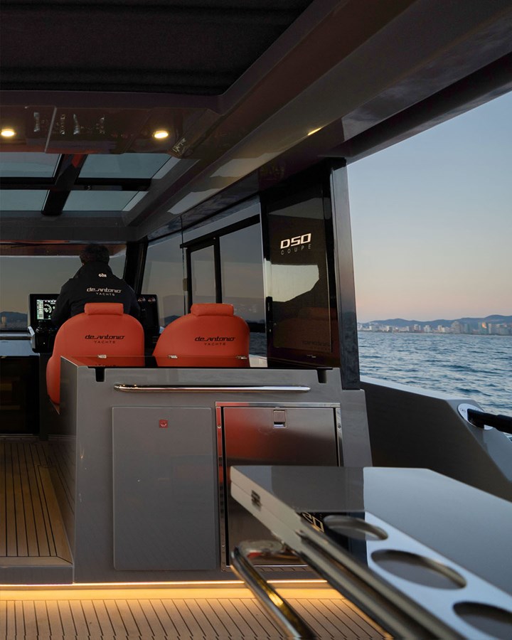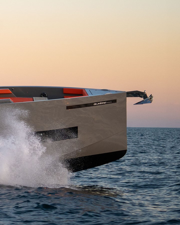 The De Antonio D50 Coupe (2024) is a sleek and powerful 14.5 m sport cruiser designed for speed, comfort, and style. Powered by twin 600 V12 Mercury Verado outboards, it reaches up to 46 kn, while a shallow 0.70 m draft allows access to secluded coves. With 2 cabins, 1 bathroom, a spacious salon, and fully equipped galley, it combines luxurious living with high-performance cruising. Its dark grey hull, modern orange upholstery, and premium deck finishes make it a standout yacht for day trips or coastal adventures.