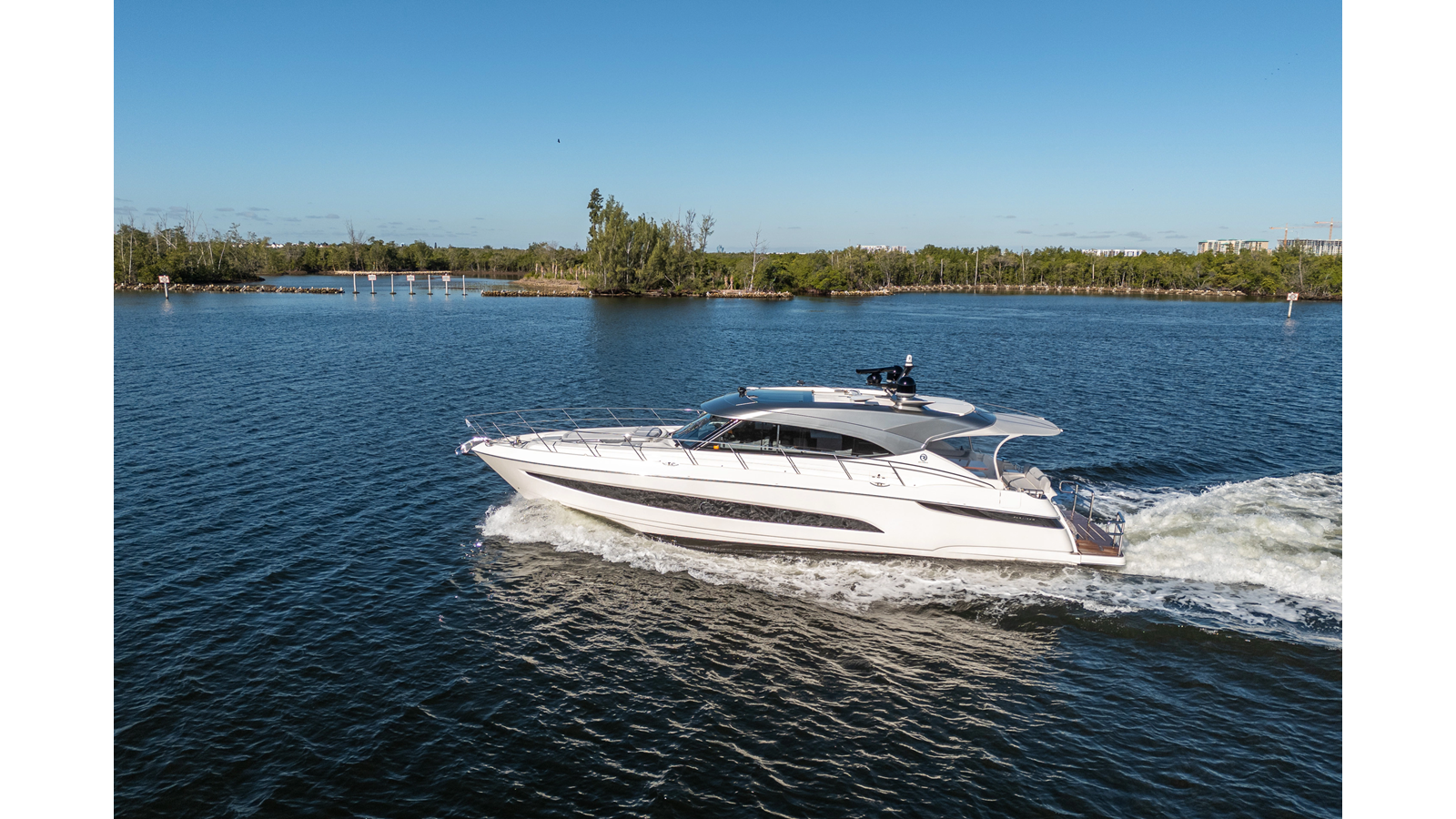 Inspired by the evolving lifestyles of modern yacht owners, the 5400 Sport Yacht redefines onboard living. Riviera’s vision was to create a yacht that seamlessly integrates elegant styling, cutting-edge technology, and effortless entertaining spaces. The result is a yacht that combines clean lines, rich interiors, and relaxed sophistication with spirited performance at sea.