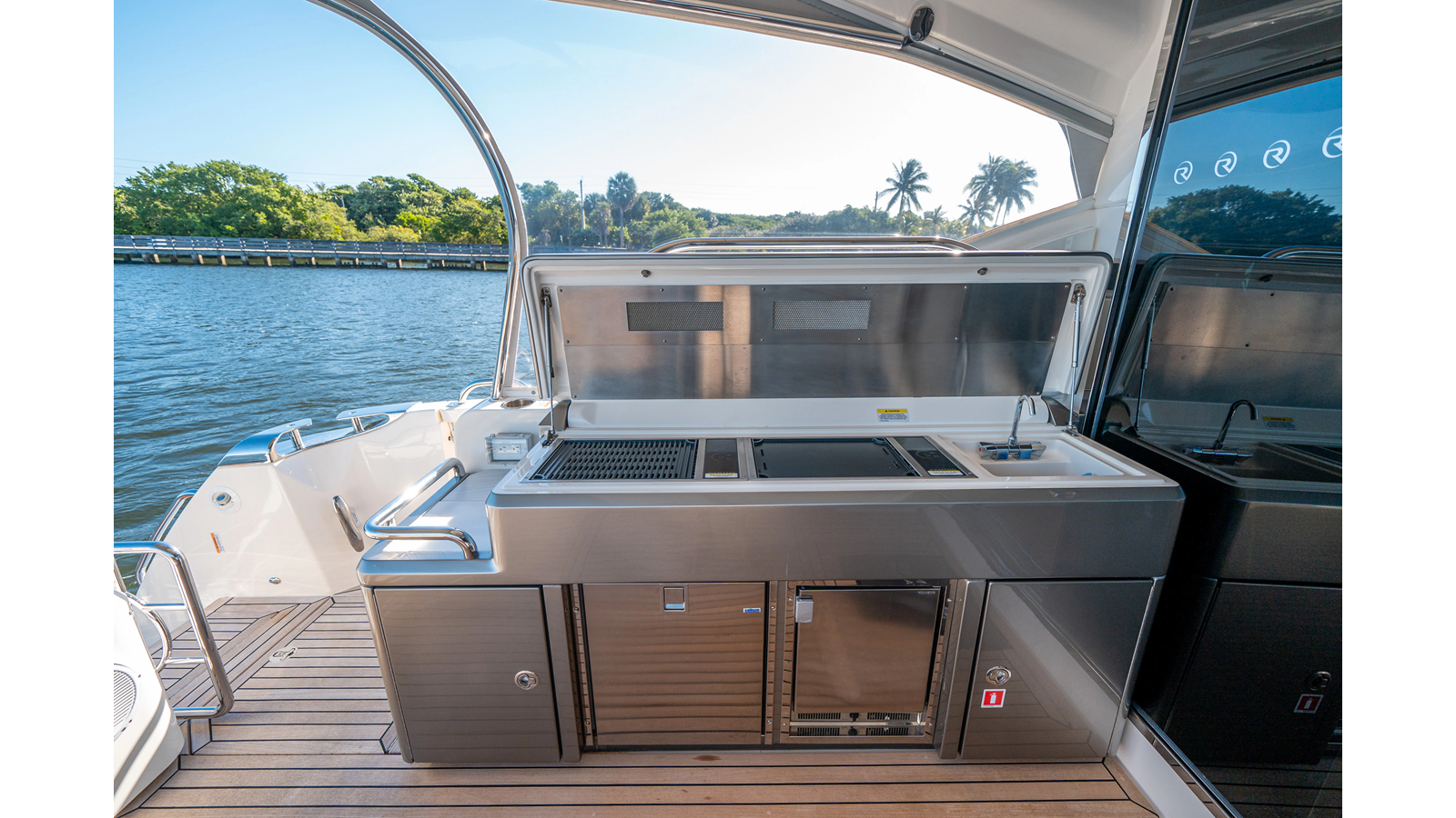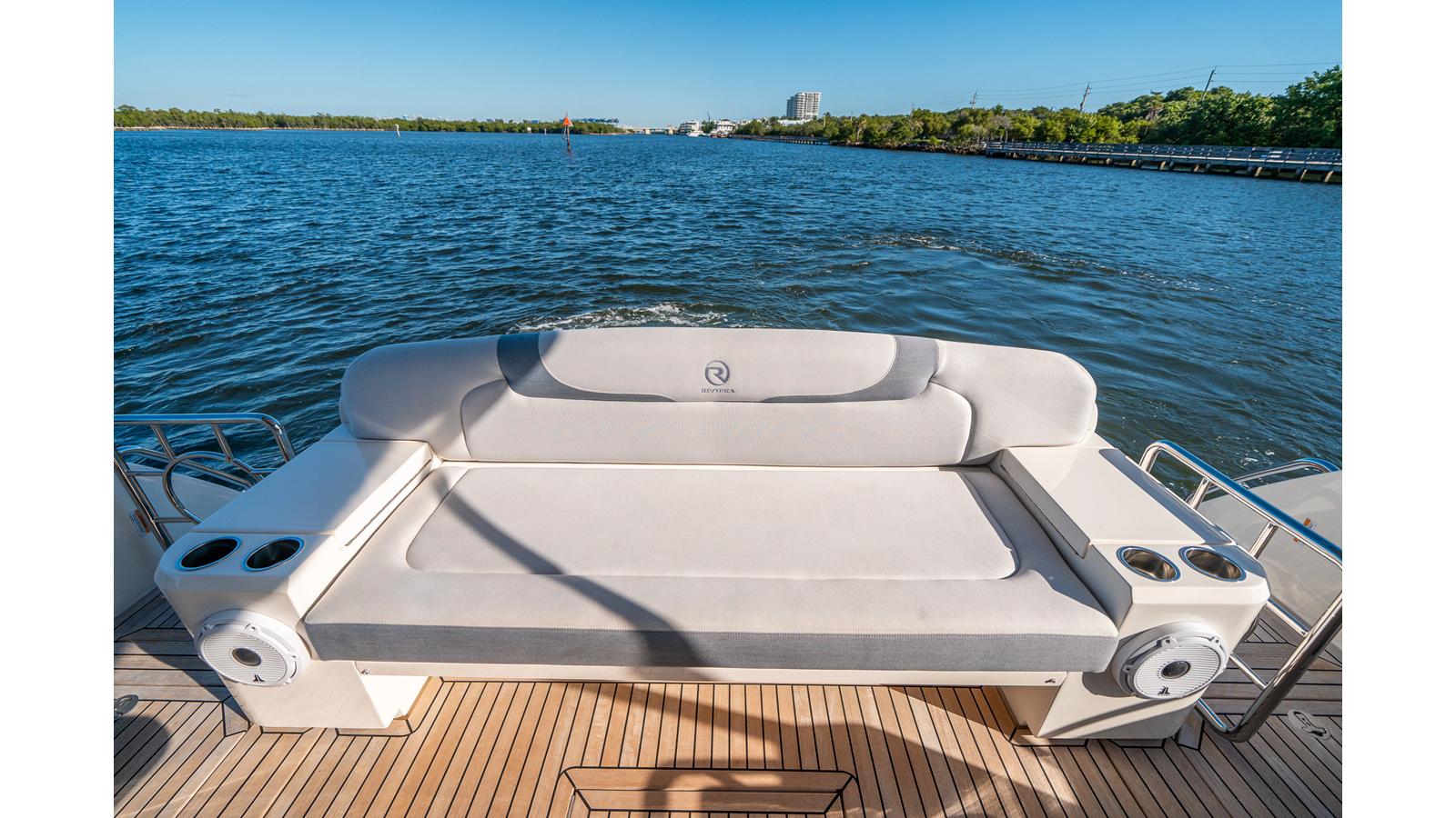 Below deck, WATERDOG offers a three-stateroom, two-head layout, highlighted by a full-beam master suite with a private ensuite. Every detail reflects Riviera’s commitment to craftsmanship and comfort, from the high-gloss timber finishes to the thoughtful integration of light, texture, and space.