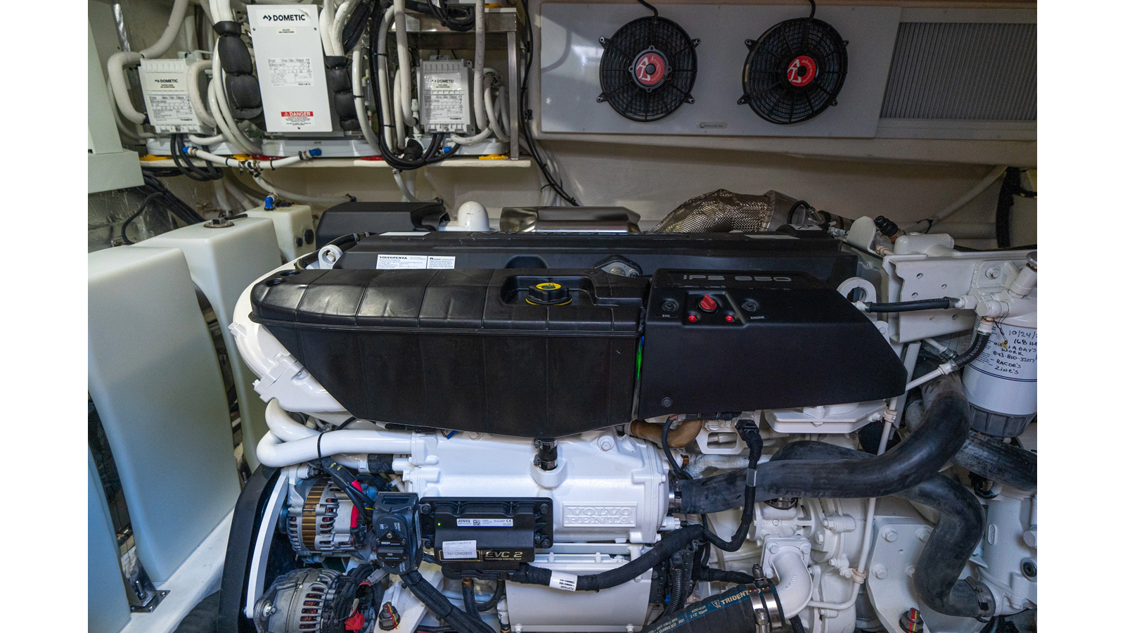 Recent services include bottom paint, Seakeeper maintenance, AC descaling, and generator service, ensuring WATERDOG is turnkey and ready for her next adventure. She is powered by twin Volvo IPS 950s , with only 355 hours .