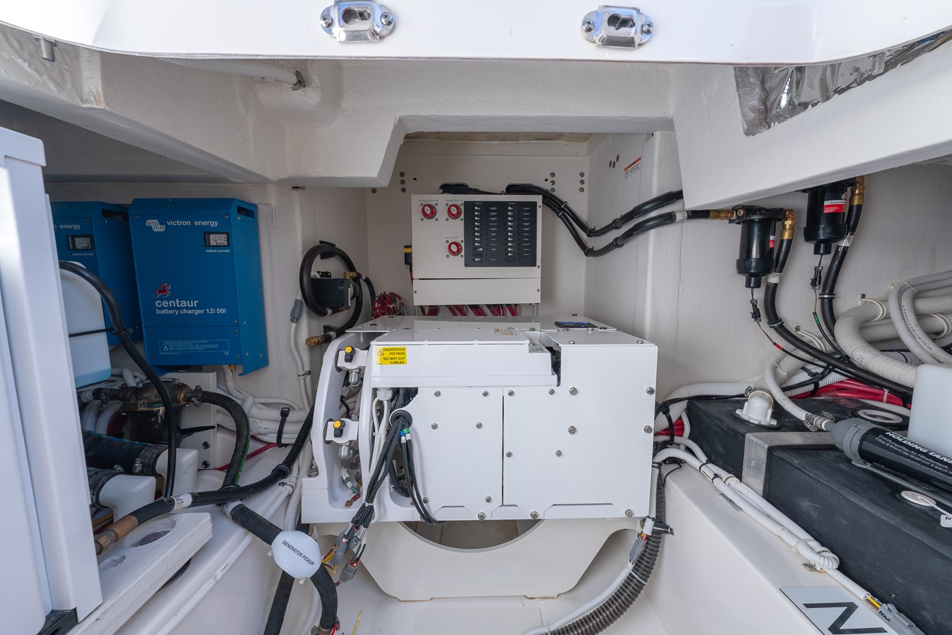 - Tiara Yachts custom 12V DC & 120V AC electrical system with master distribution panel in interior cabin