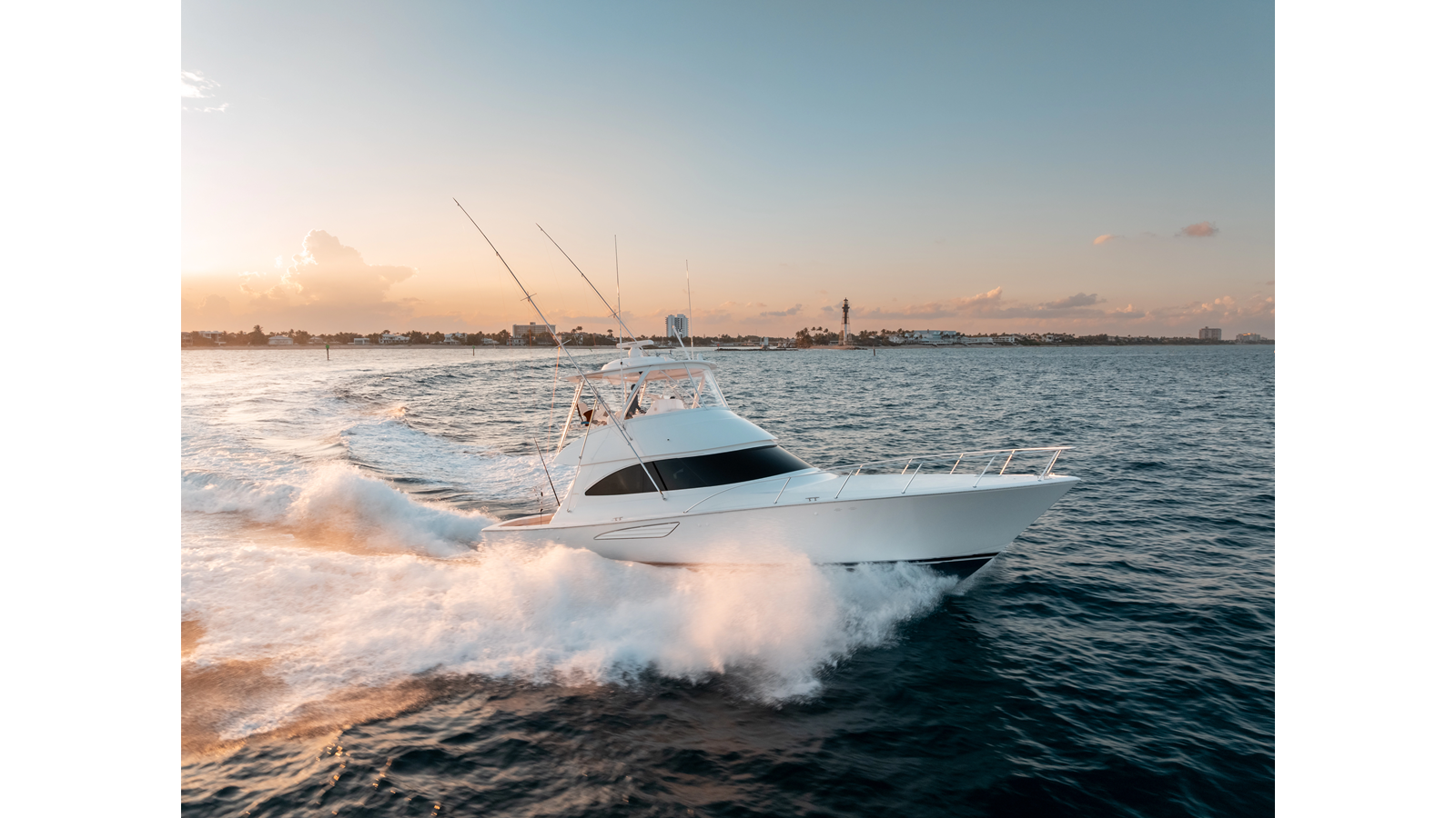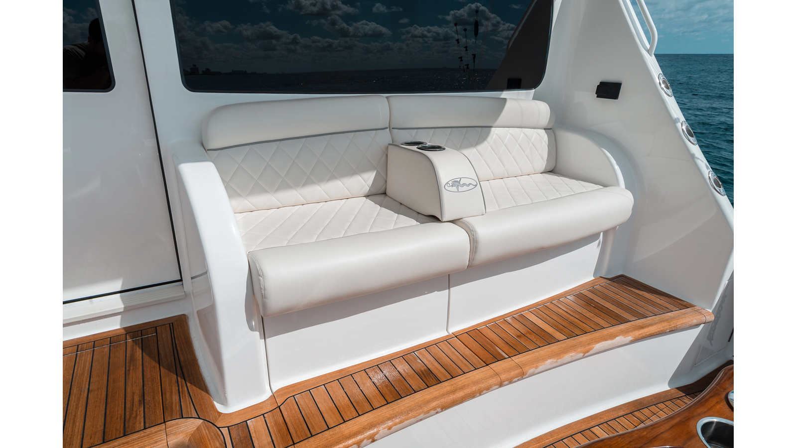 The model packs a lot in a very manageable size with a 3/2 layout, air conditioned flybridge, and great features for longer runs to fish the islands or canyons like a SeaRecovery Aquamatic Water Maker and Eskimo ice chipper.