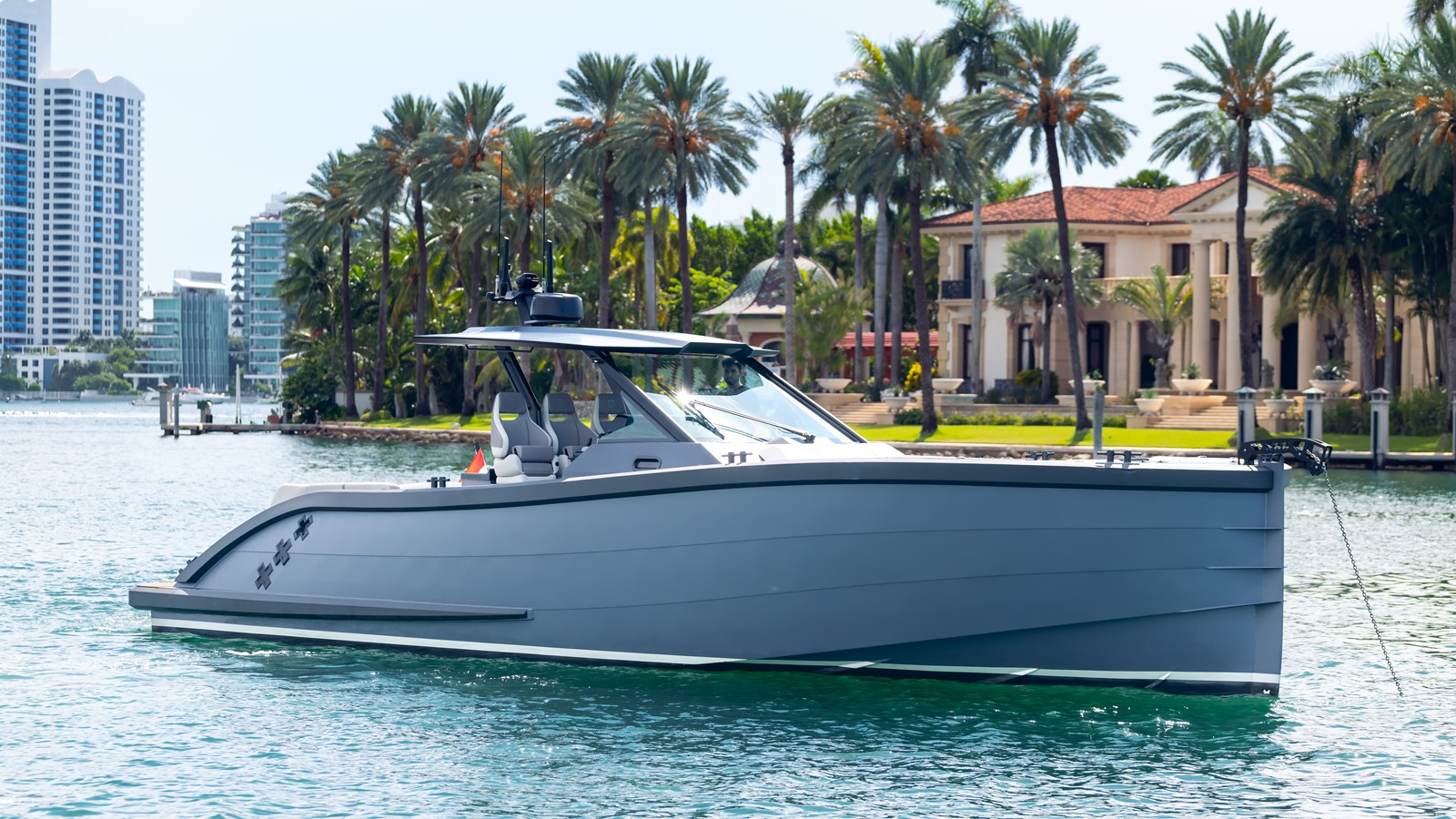 Finished in sophisticated Graphite Grey with Coconut cushions and Biscuit teak with black seams, this brand-new vessel will arrive at your dock with a full factory warranty, and the latest innovations from one of Europe's most respected performance dayboat builders. Don't miss this opportunity to skip the 12-month build time and secure the newest LEKKER model as the first person on the side of the Atlantic to own this sleek and exceptional 45 foot boat.